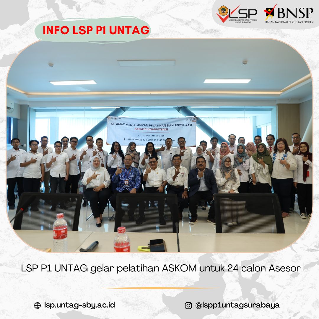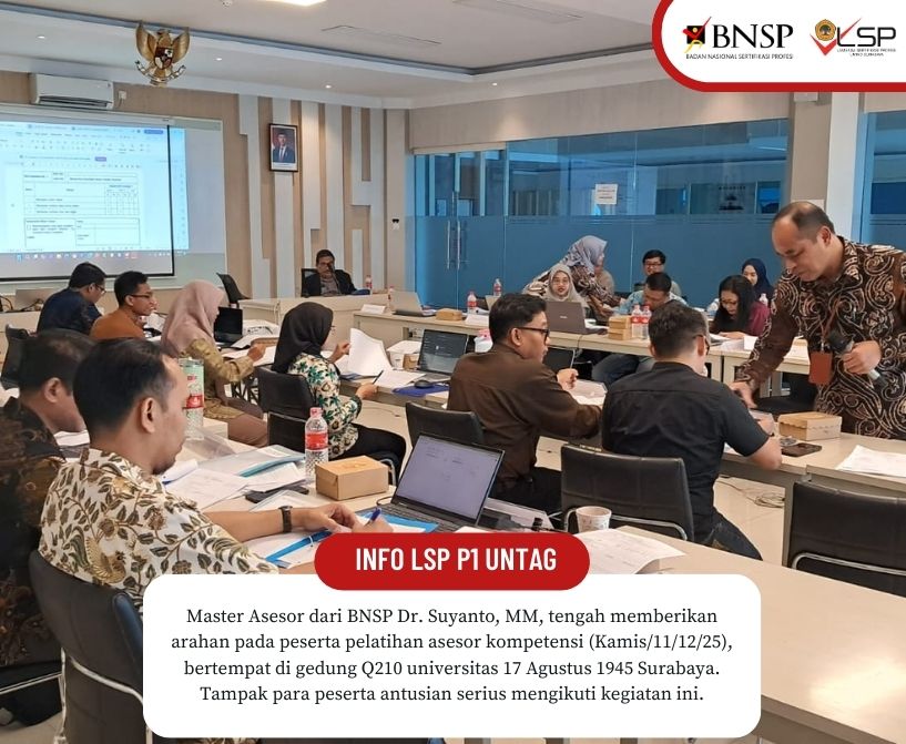 Surabaya, 8 Desember 2025 — LSP P1 Universitas 17 Agustus 1945 (Untag) Surabaya menyelenggarakan Pelatihan Asesor Kompetensi (ASKOM) yang diikuti oleh 24 calon asesor dari berbagai bidang...